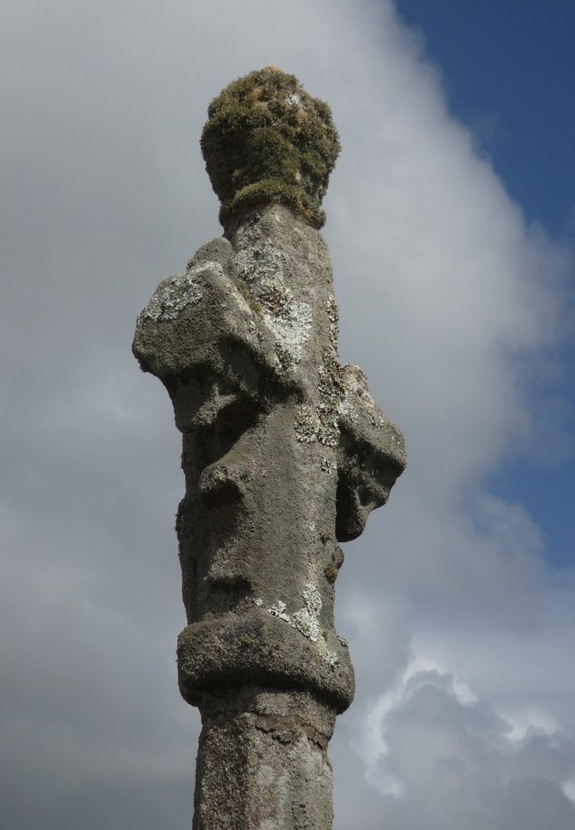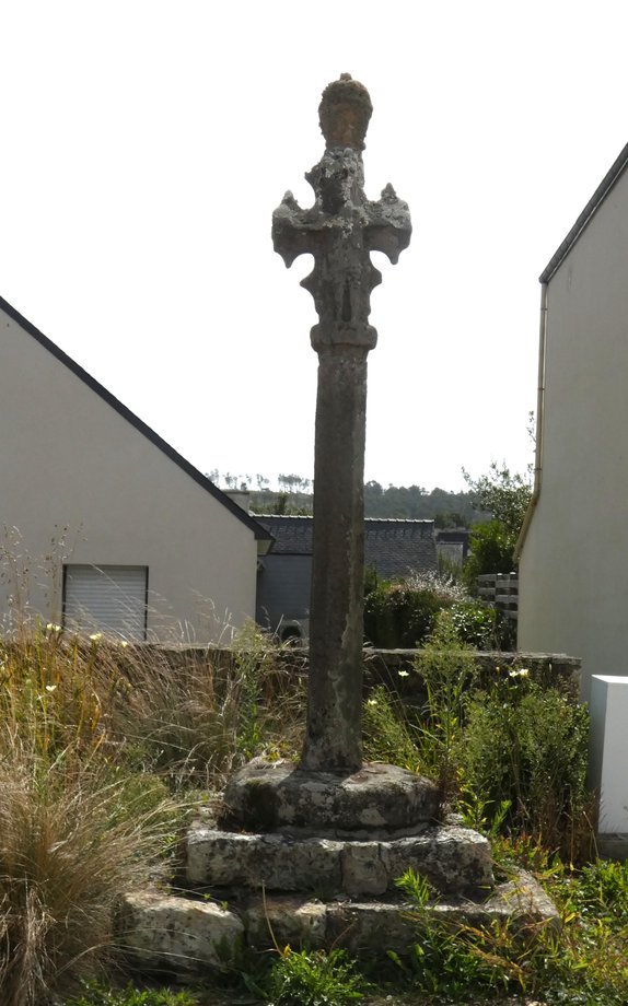 3. Coat-Garec + Croaz-an-Dreinded, g. 3,60 m. XVIè s. Deux degrés. Fût à huit pans, orné de ciseaux à tondre. Crucifix. Pietà. Restaurée en 1921. Inscription M.D. [YPC 1980]