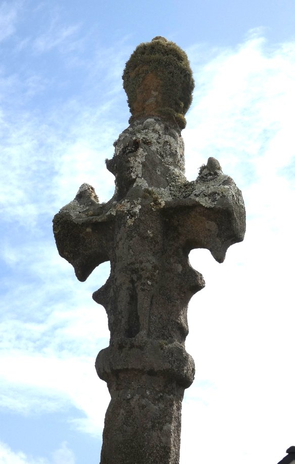 8. Lanvily + k. 4,10 m. 1716. Soubassement. Degré. Socle: M. LATREILLE. 1891. (restauration). Fût à pans, masque, bague. Croisillon mouluré à culots, sans personnages : M. LATREIL 1716. Croix à branches rondes, fleurons-boules, crucifix. Restauration par anneaux de fer. [YPC 1980]