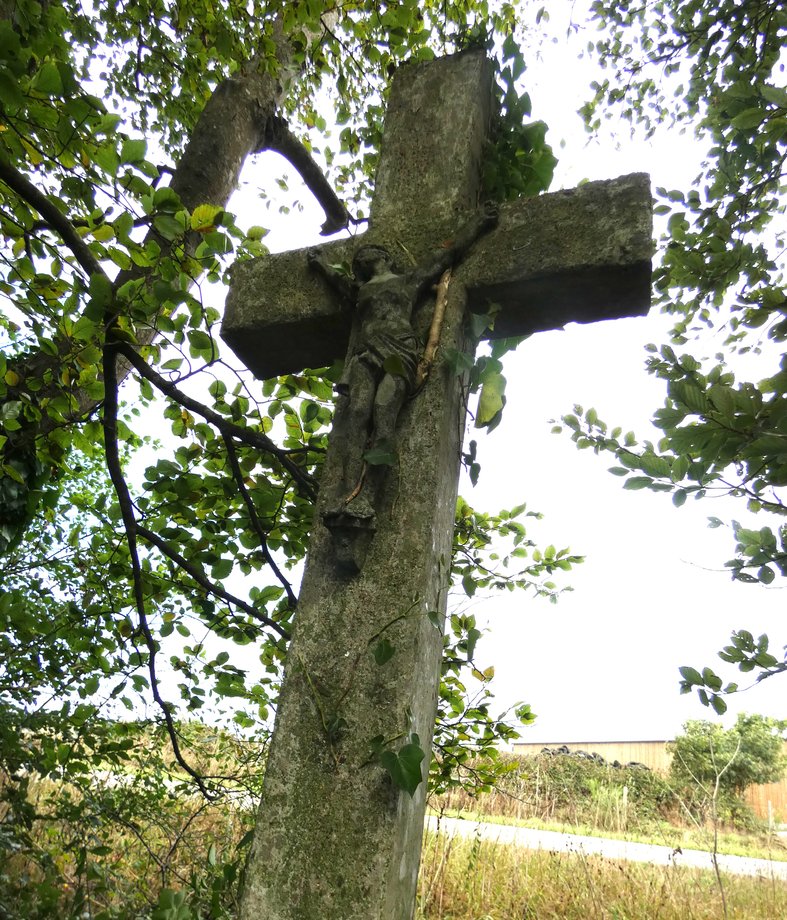 9. Roscoat + k. 0,80 m. XVIe s. Vestige de crucifix dans le mur d’une grange. [YPC 1980]