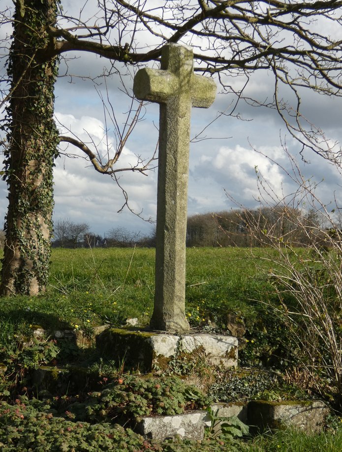 899. Keriolay S + g. 3 m. Moyen Age. 1818 (1965). Base à deux degrés. Socle carré: 1818, 1965. T. PERROT. Croix monolithe à bras courts, pans coupés. [YPC 1980]