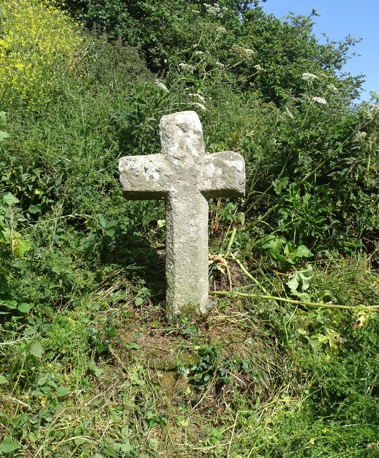 Keraméal nord-ouest, Pont-ar-Glaouer, g. 2 m. Moyen Age. Croix monolithe pattée sur chanfrein, petite croix gravée au centre. [closdesfuchsias 2025] Cette croix avait été répertoriée par erreur à Saint-Frégant (voir n°2708 Keréobret n°2). [closdesfuchsias 2025]