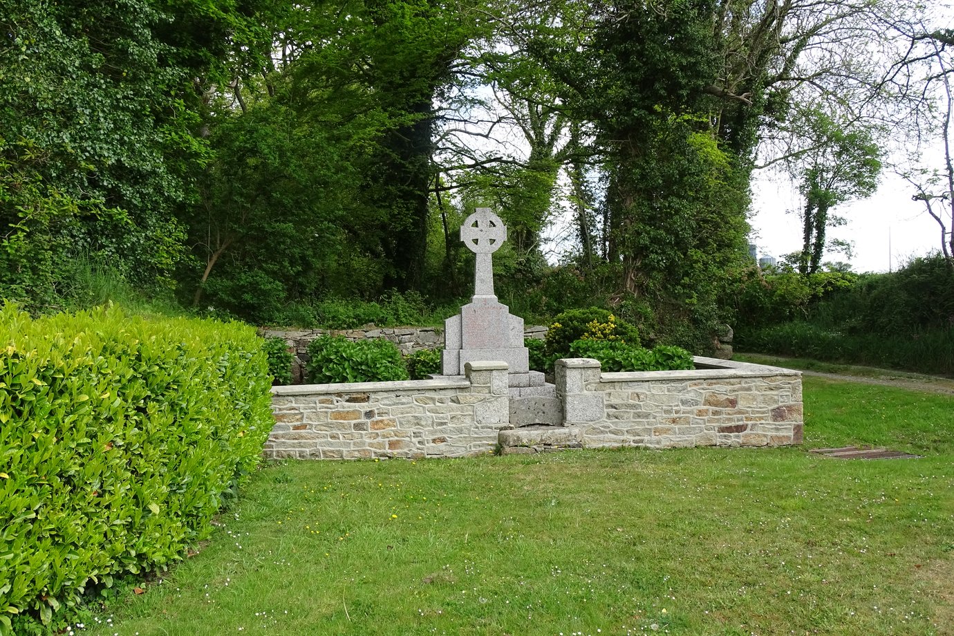 1105. Lannilis S, g. 2 m. XXè s. Degré, socle cubique élevé, croix unie. [YPC 1980]