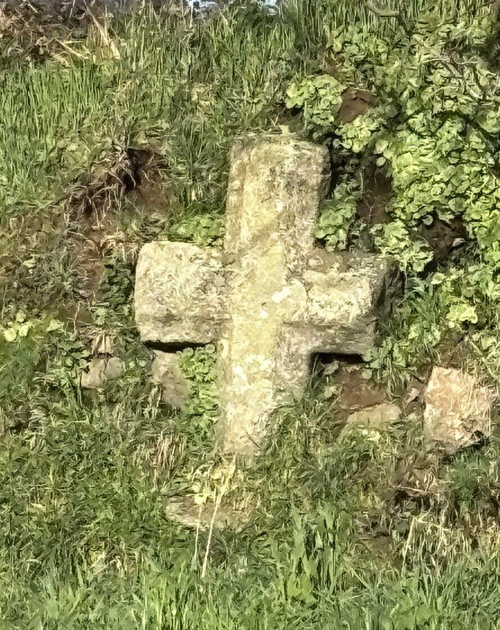 1100. Kerhuzal no 3, g. 1,20 m. Haut Moyen Age. Croix fruste, branche haute brisée. [YPC 1980]