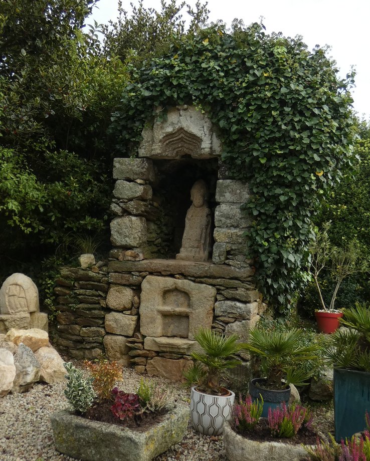 Petit oratoire avec une croix sur le fronton. [closdesfuchsias 2026]