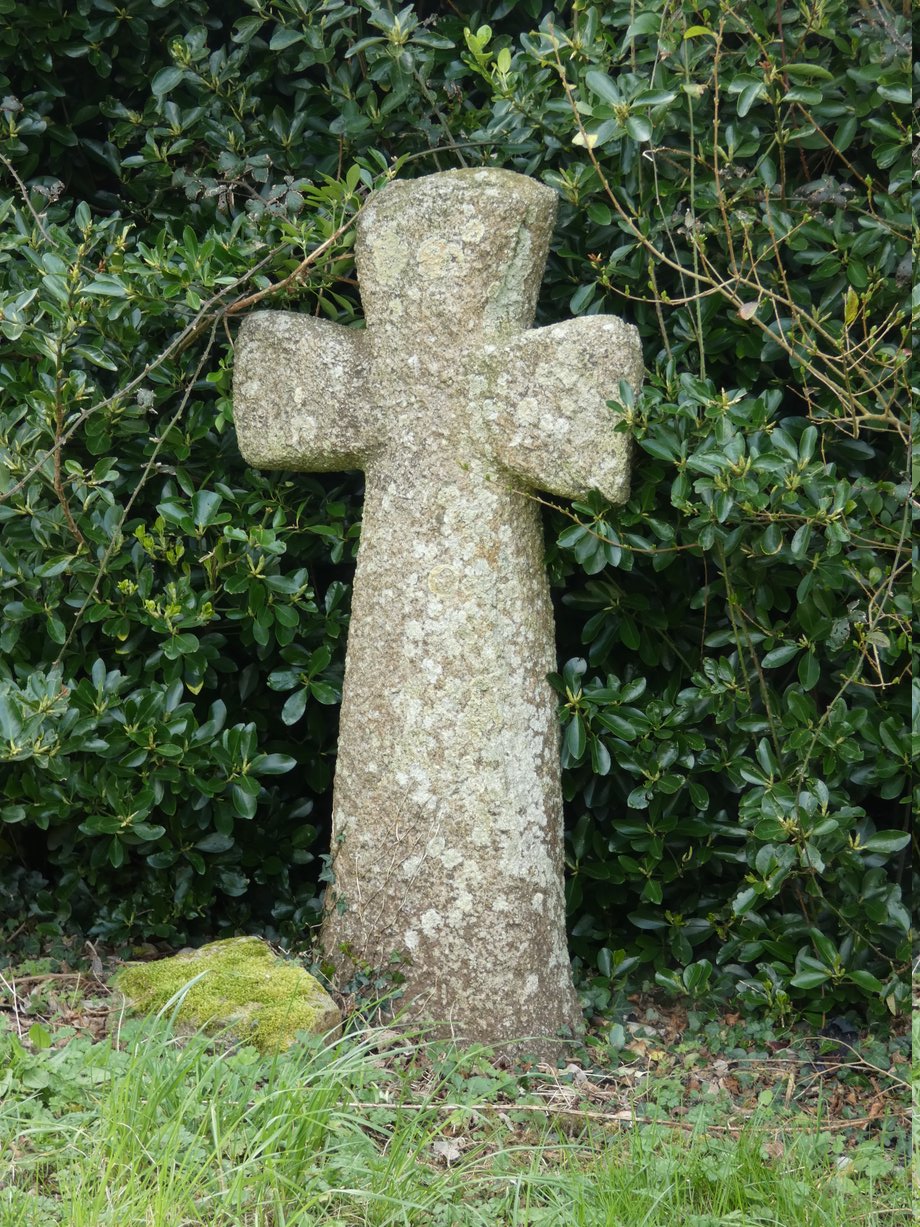 1842. Kerscouarnec, g. 2 m. XVIè s. Soubassement de plan rectangulaire à trois degrés. Fût à pans, noeud, croix de section octogonale. [YPC 1980]