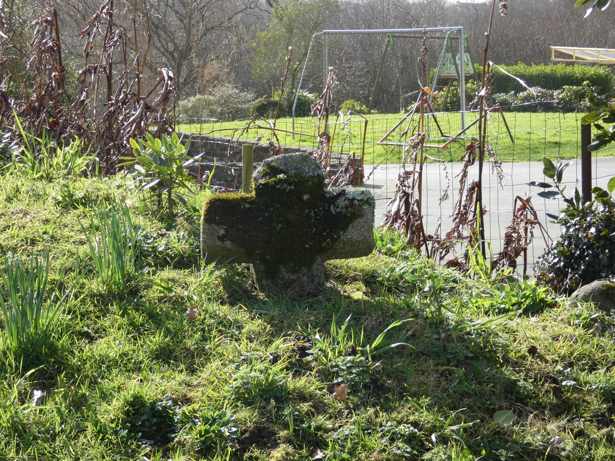 2343. Croazhent-Kerbréden S + g. 1,80 m. Haut Moyen Age. Grande croix monolithe, une branche restaurée récemment. [YPC 1980] Matériau : Granit. [closdesfuchsias 2025]