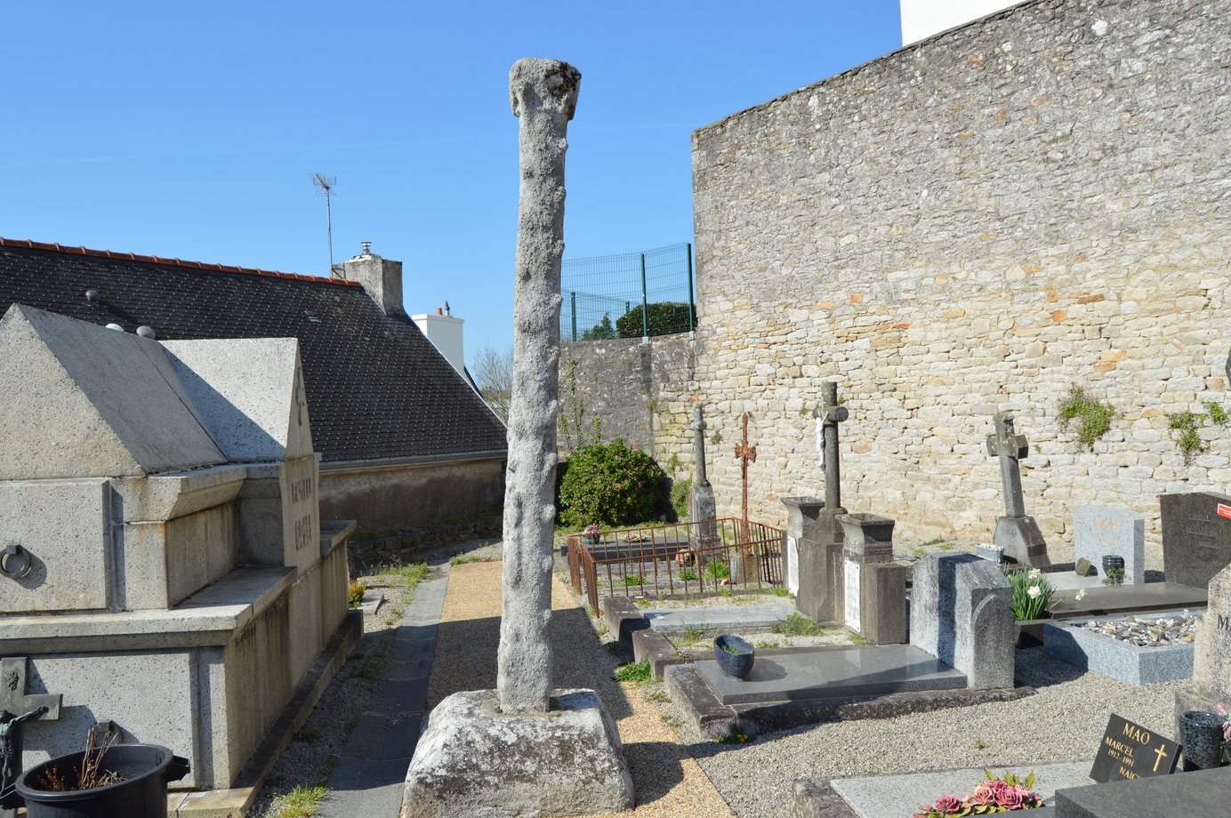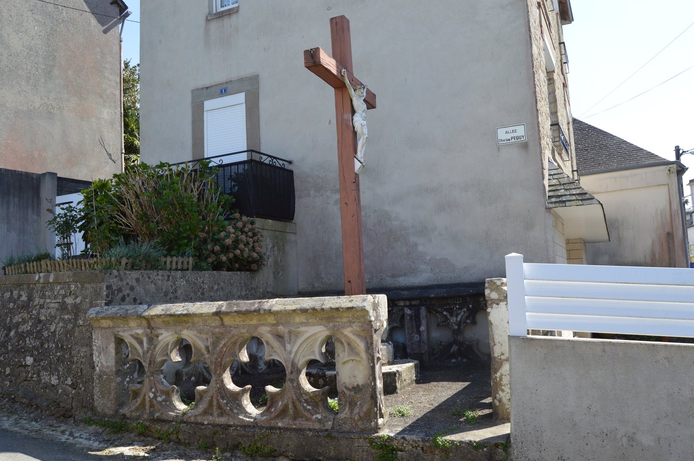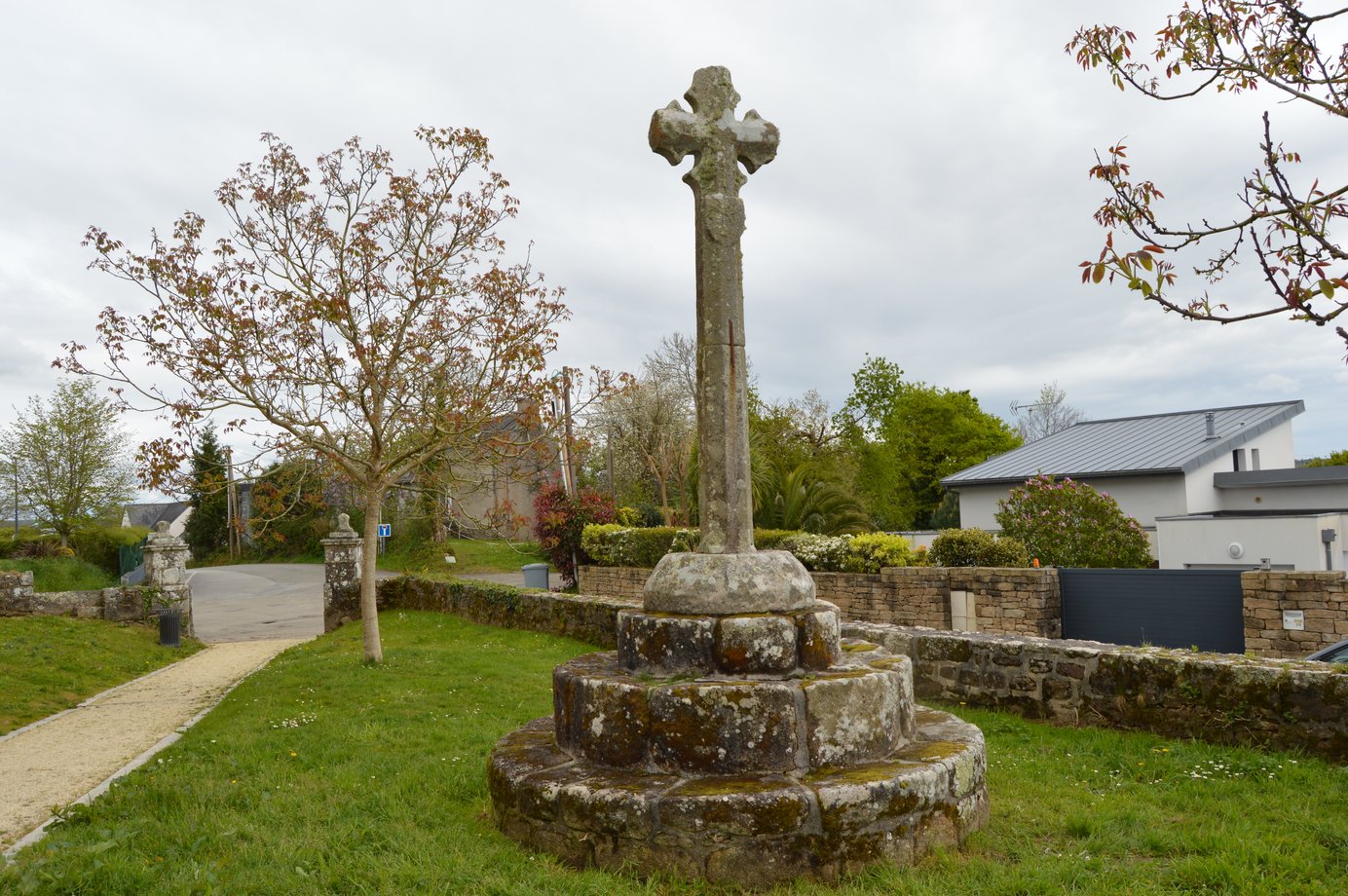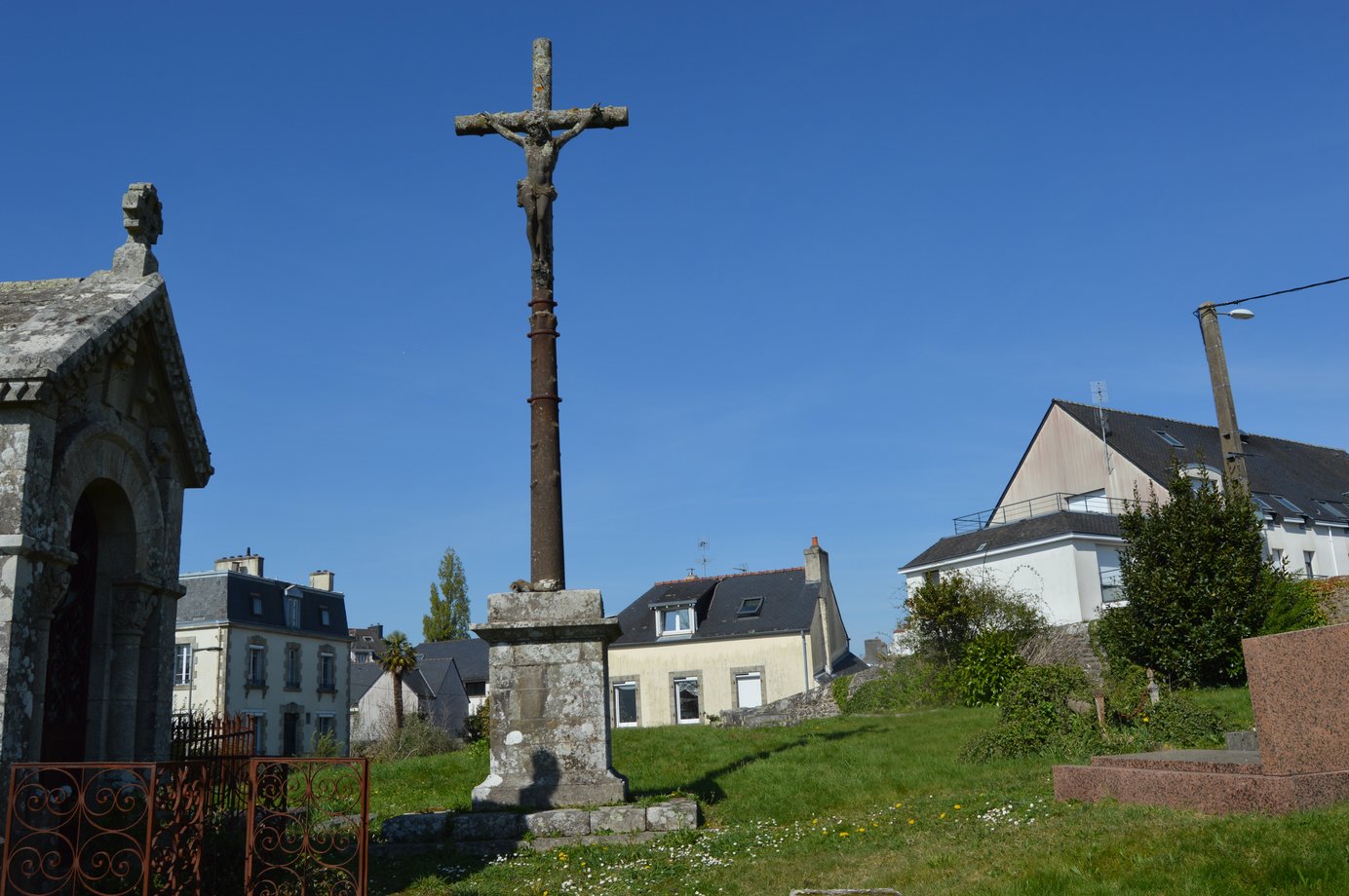 2598. Locmaria N-0, rue du Commandant Avril, g. 4 m. XIXè s. Trois degrés circulaires. Socle. Croix de section octogonale, branches pointues. [YPC 1980]
