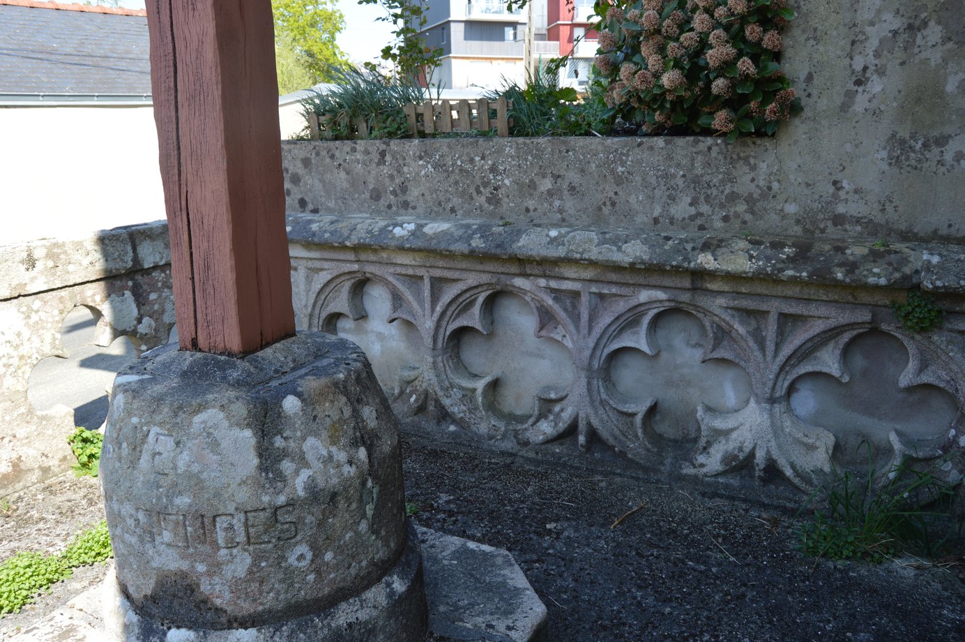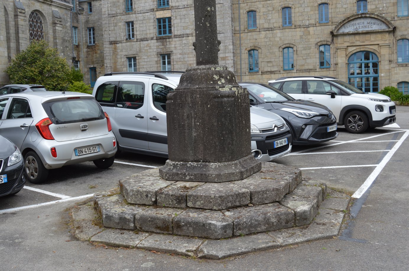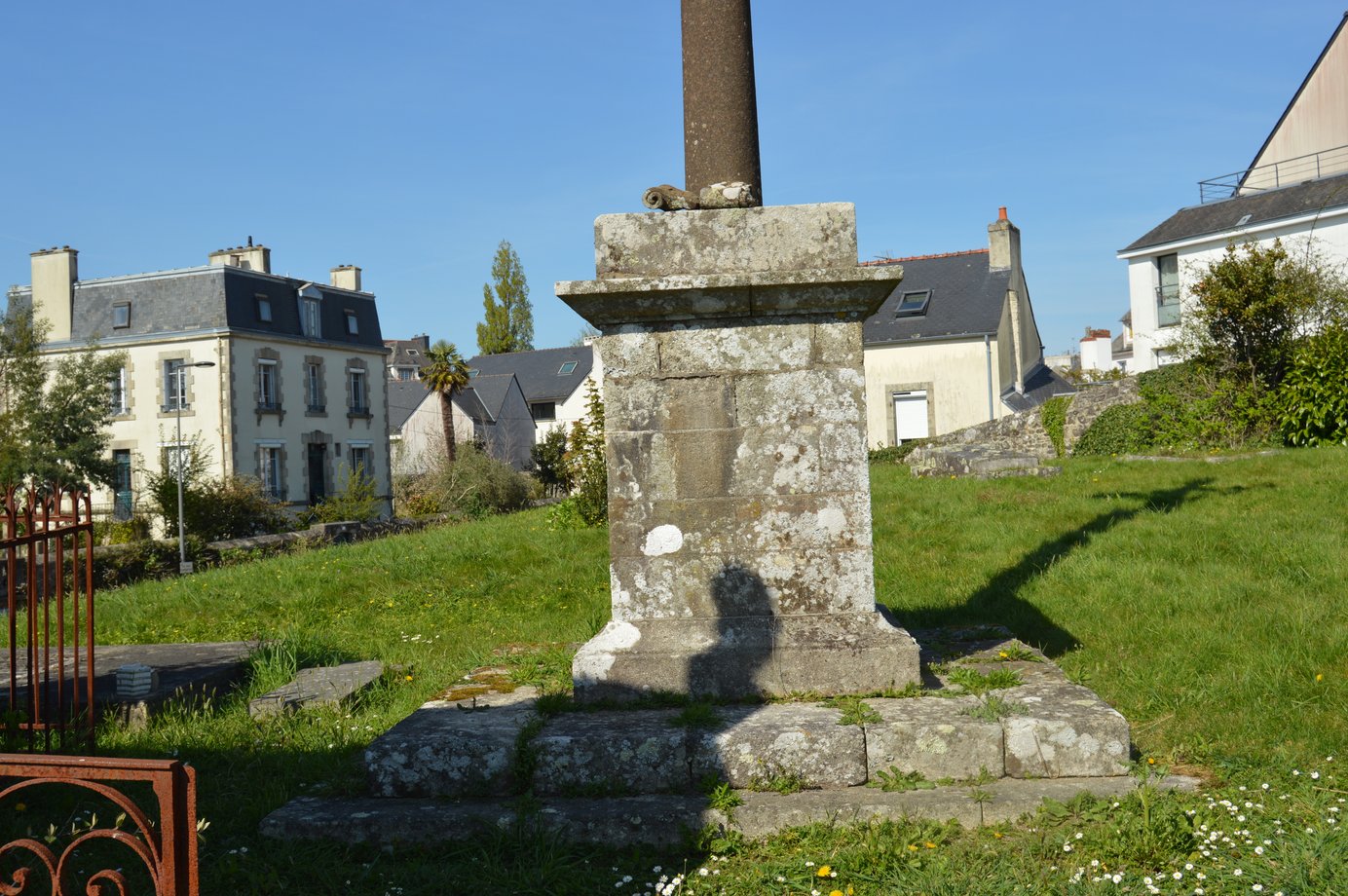 2608. Quimper, cimetière Saint-Louis, g. 3m. XVè s. Socle à pans. Fût, écots, chapiteau. [YPC 1980]
