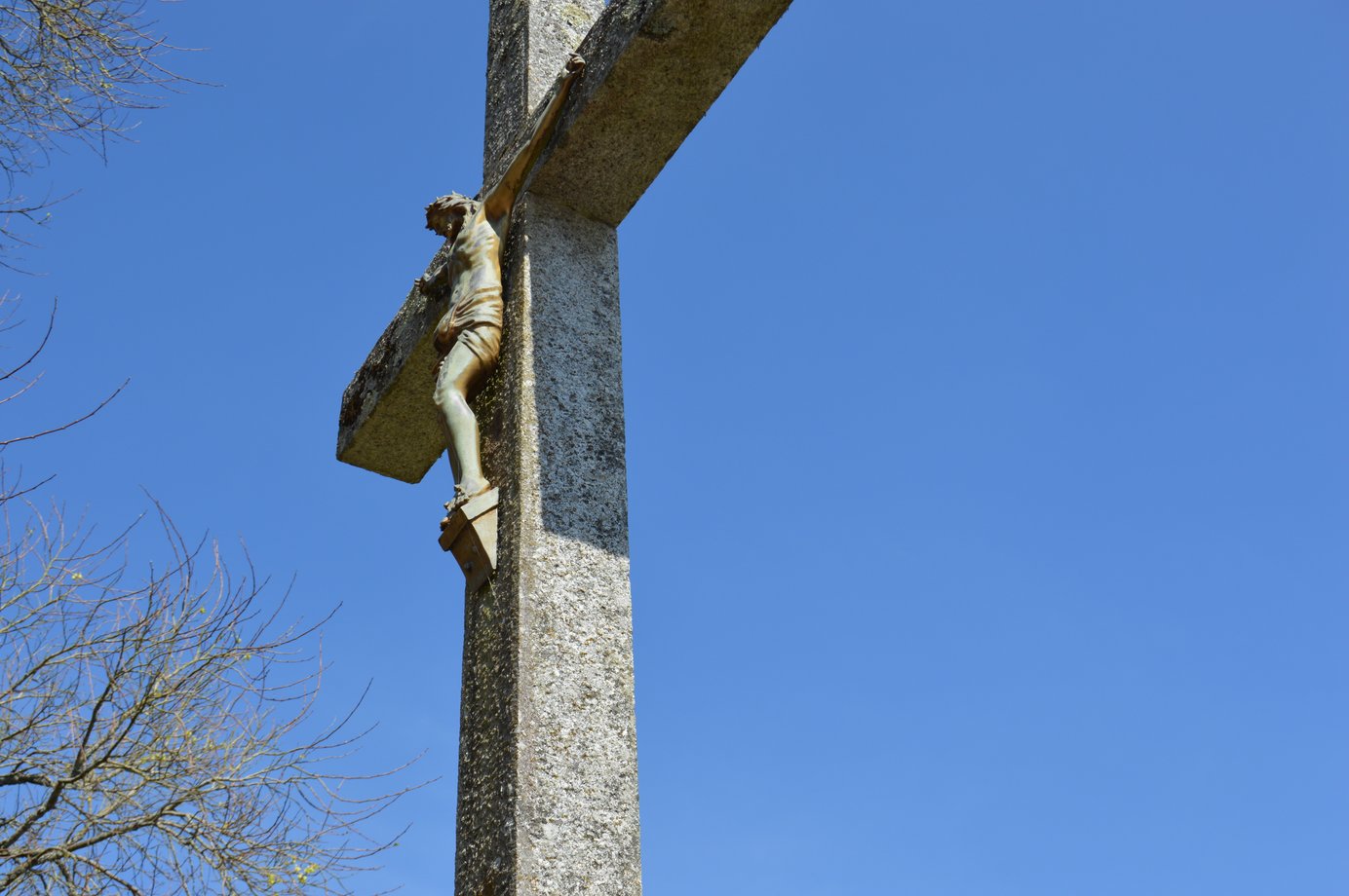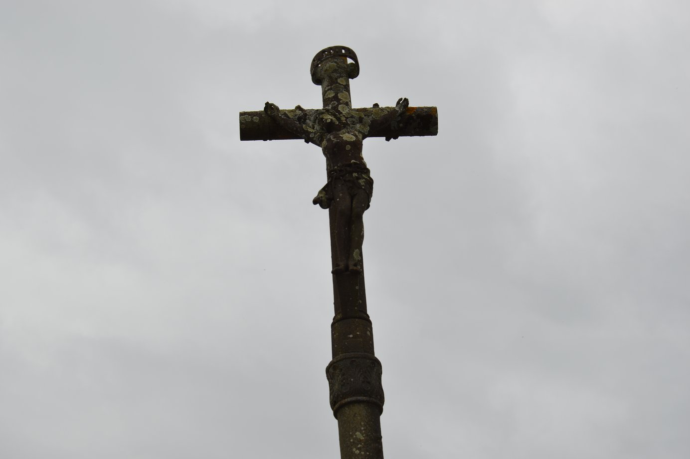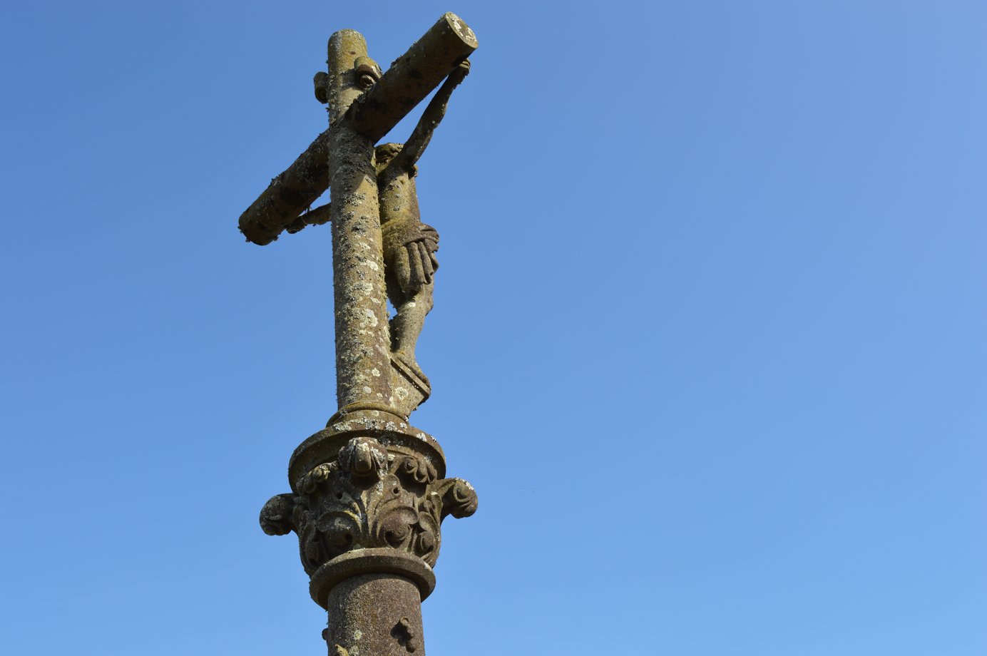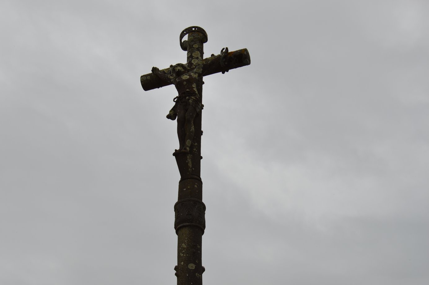 2604. Penbars, Quilhaouarn, g. 3 m. 1937. Deux degrés. Socle cubique: 1937. Fût rond, écots, chapiteau. Croix de section carrée, crucifix. [YPC 1980]