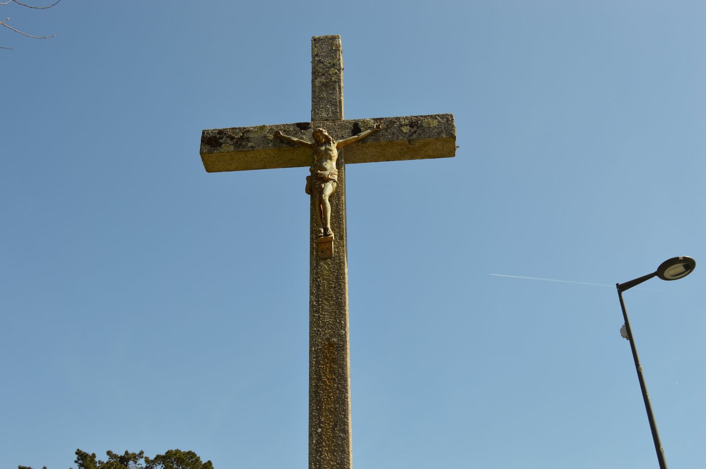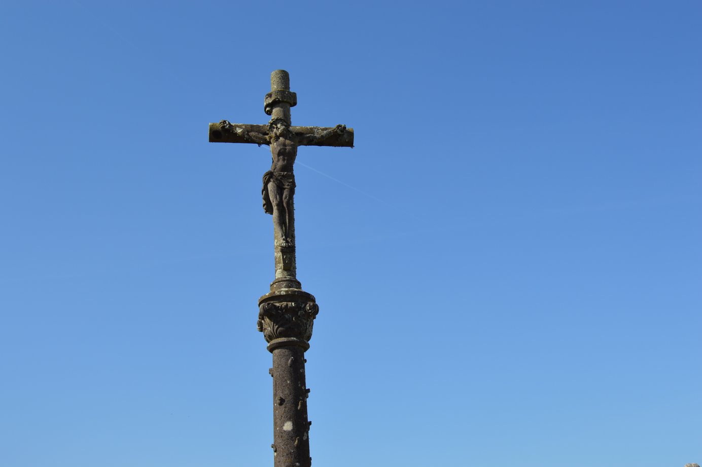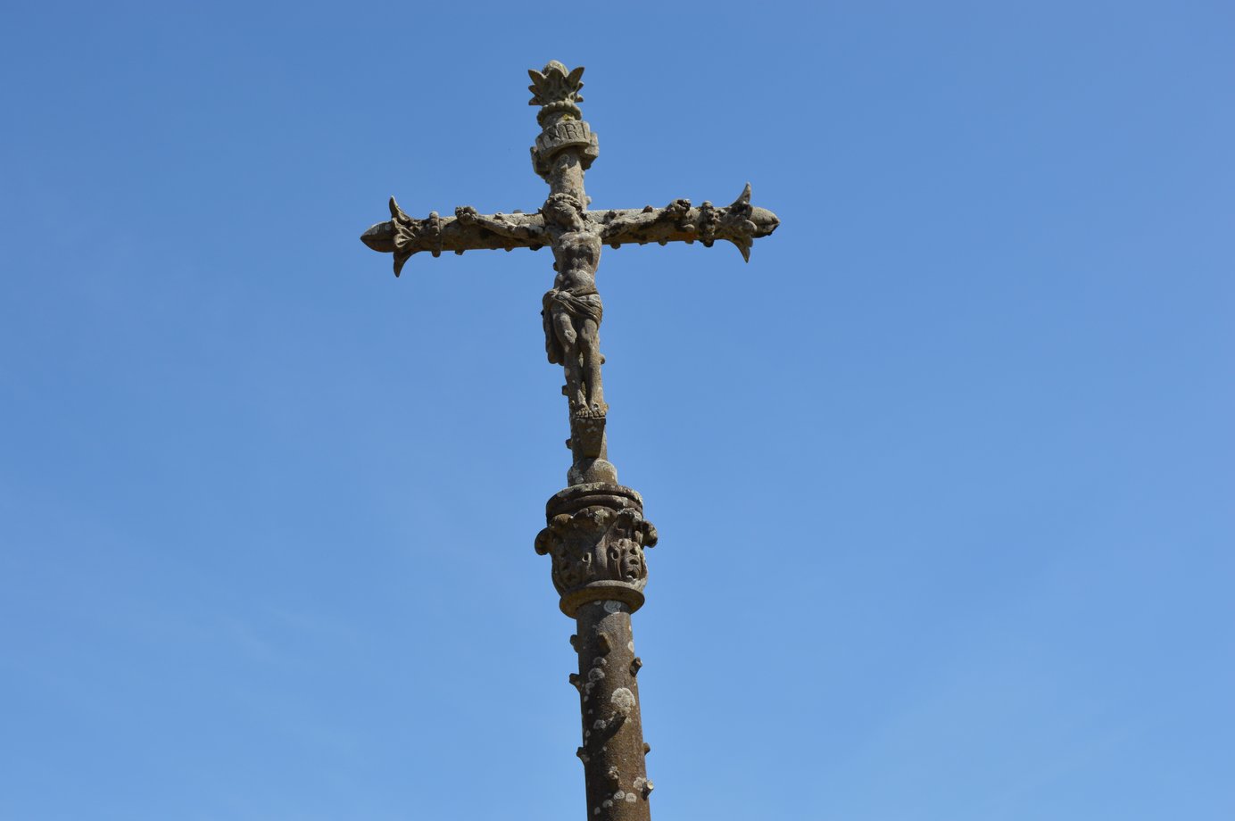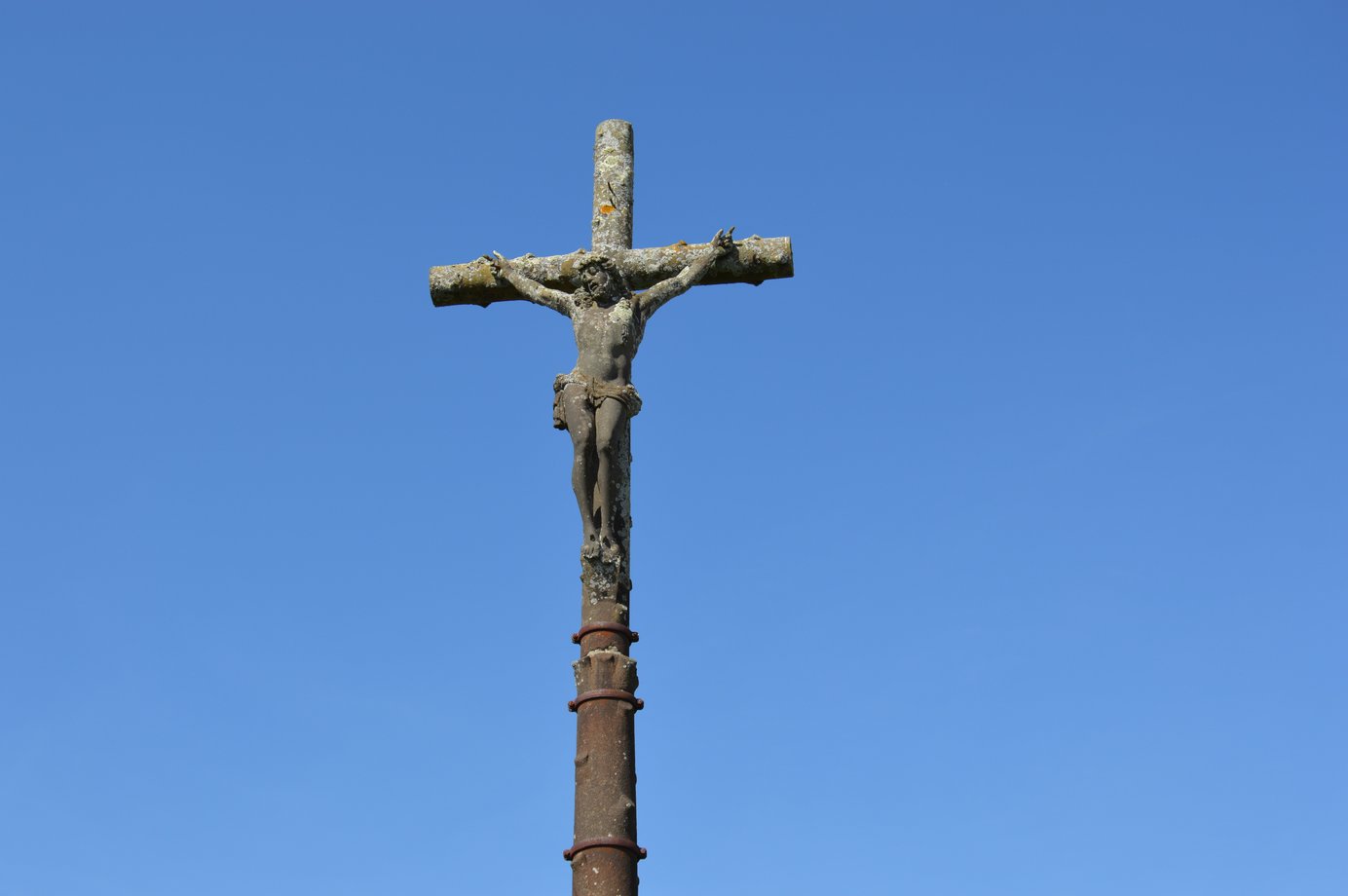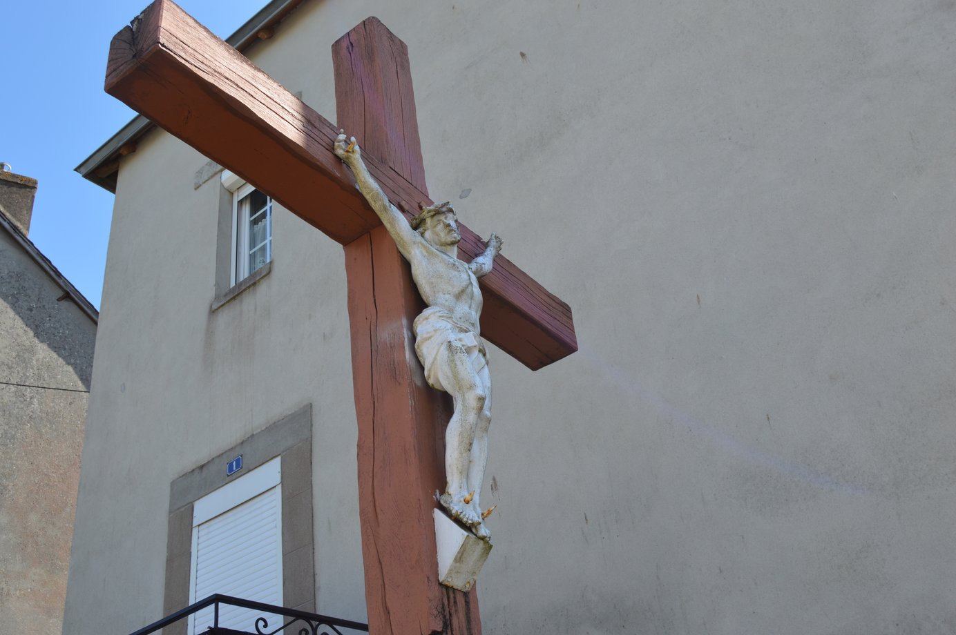 2604. Penbars, Quilhaouarn, g. 3 m. 1937. Deux degrés. Socle cubique: 1937. Fût rond, écots, chapiteau. Croix de section carrée, crucifix. [YPC 1980]