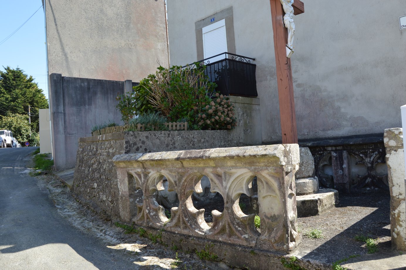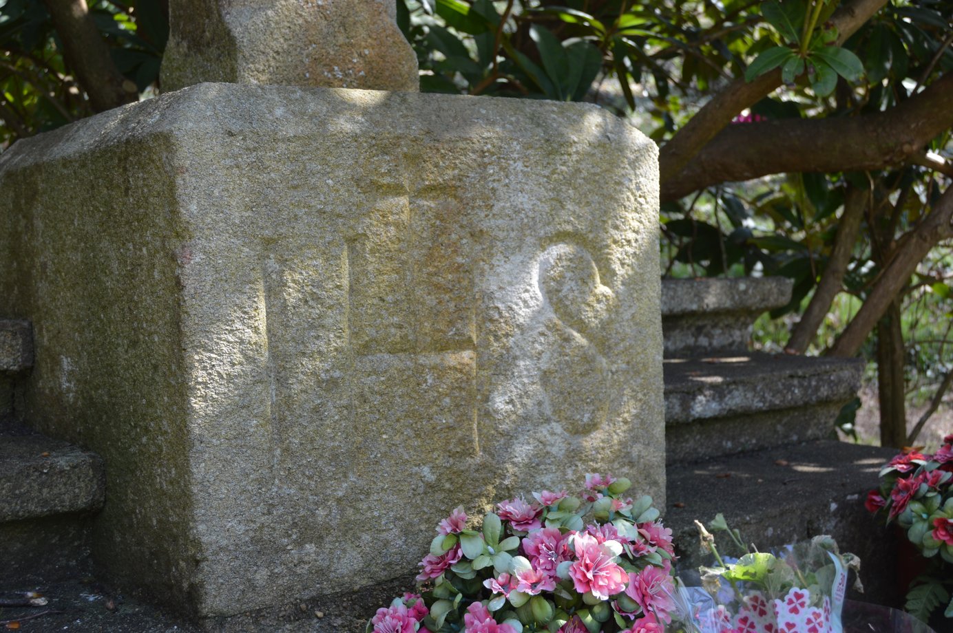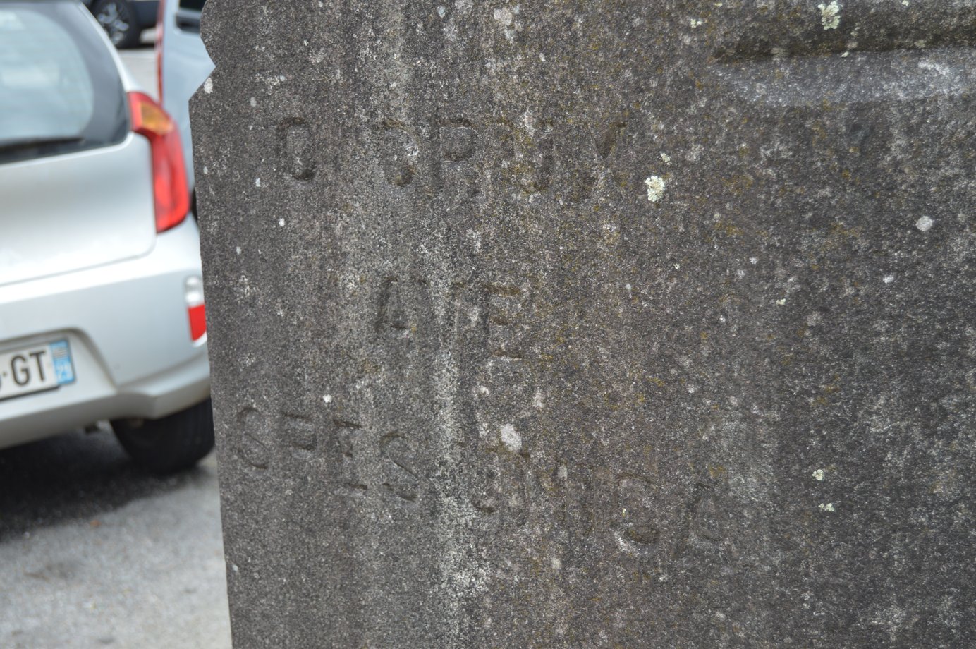 2596. Kerfeunteun, séminaire, avenue de la France-Libre, g. 6 m. 1858, 1948. Trois degrés. Soubassement cubique, corniche, degré. Croix, crucifix de fonte. [YPC 1980]